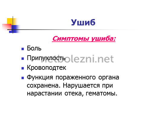 Степень тяжести травм бывает разной. Если ушиб, удар был значительным, есть риск серьезных повреждений (отрыва, разрыва связок, переломов) — в такой ситуации лучше сразу вызвать «скорую помощь». При растяжениях, небольших кровоизлияниях и синяках врач может рекомендовать лечение в домашних условиях.